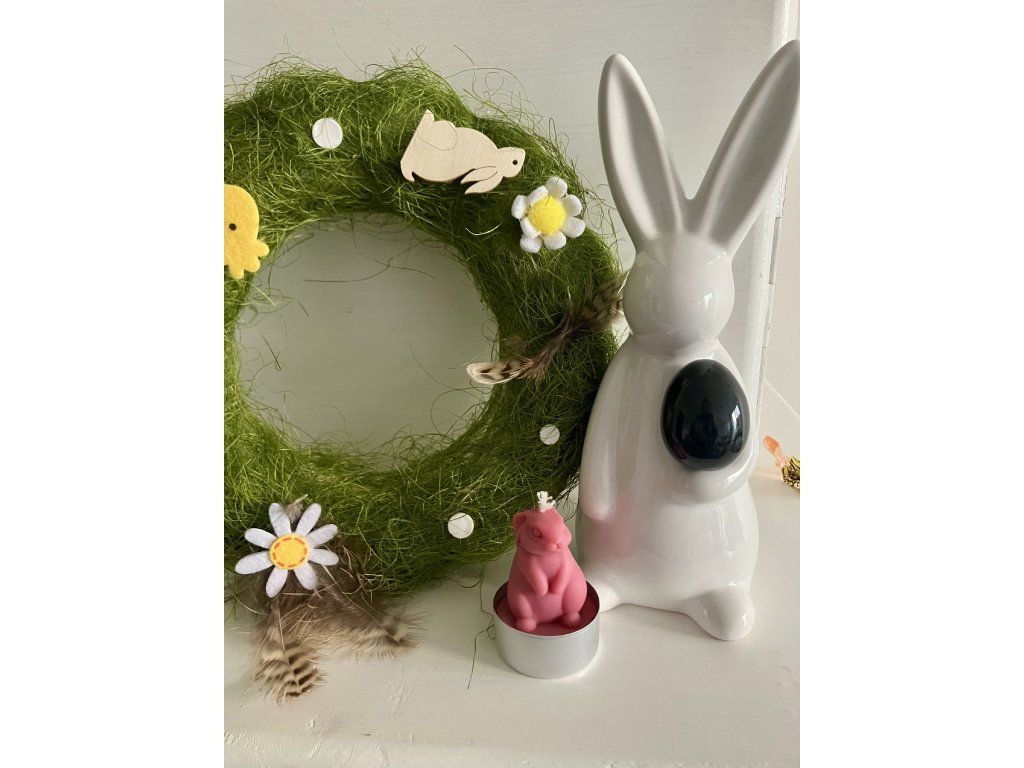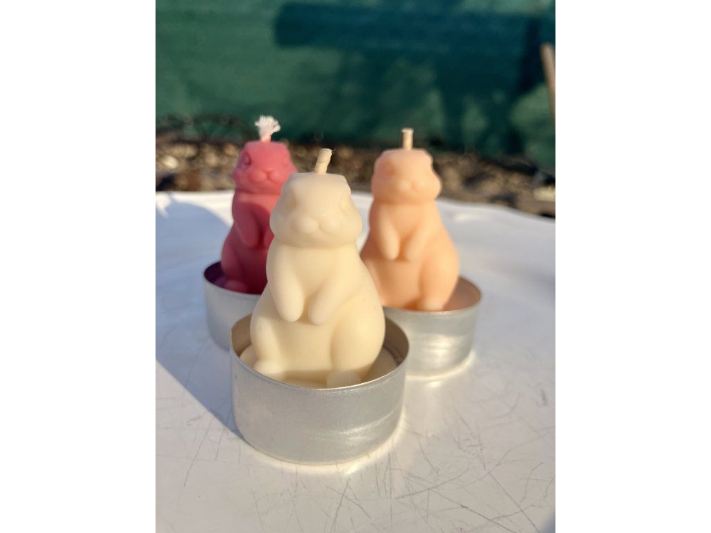 Čajová svíčka ve tvaru zajíčka v různých barvách. Pokud si budete přát nějakou konkrétní, neváhejte se ozvat :)