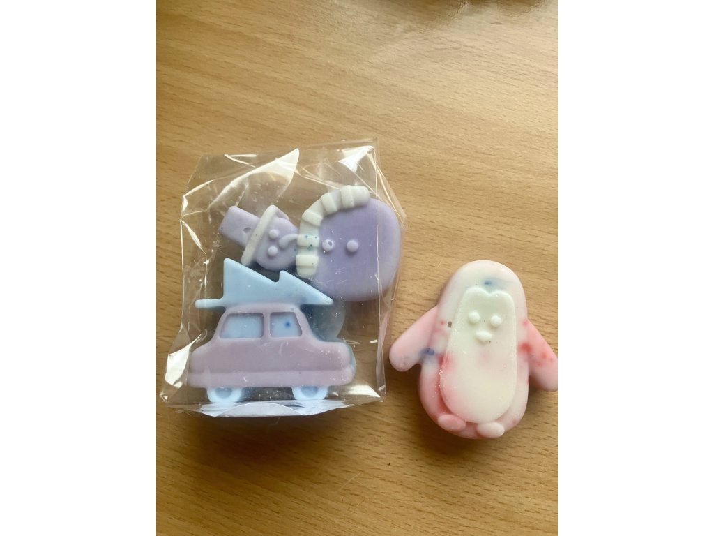 Vonný vosk v podobě zimních postaviček, vždy po dvou kusech. Vůně warm blanket, neboli hřejivá deka